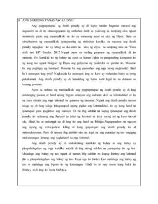 Kasabay nito ang akusado ay binigyan ng karapatang paglilitis sa pamamagitan ng hurado. PAKSA Ang paksa ng pananaliksik na ito ay tungkol sa parusang kamatayan isang parusang buhay ang kabayaran. This lecture will provide an overview on the history of death penalty in the.
