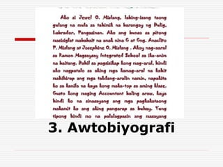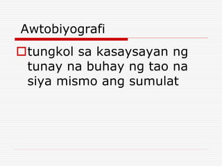 A Malalaman ang ibat- ibang uri ng tayutay. Sarili ang pangunahing pinagkukunan ng impormasyon b. Retorika masining na pagpapahayag by cecilia s austero.