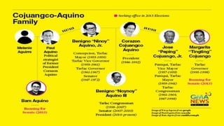 Dahil sa dumaraming bilang ng mga political dynasties sa Pilipinas karamihan sa mga posisyon sa gobyerno ay hinahawakan ng mga pulitiko na myembro ng mga political dynasties. Liberal- Aquino KBL- Marcos KAMPI- Arroyo PMP- Estrada Dahil sa political dynasty lumalawak ang impluwensiya at koneksyon ng pamilya. 20 Pangkat Etniko Sa Pilipinas Na Humuhubog Sa Kultura Ng Pilipinas Aquino III 2010- 2016 Mga sanggunian Mga kawing panlabas Mga Negrito Indones at Malay ang mga prinsipal na mamamayan ng Pilipinas.