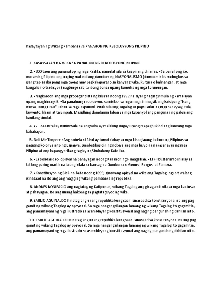KASAYSAYAN NG WIKA SA PANAHON NG REBULUSYONG PILIPINO 2.
