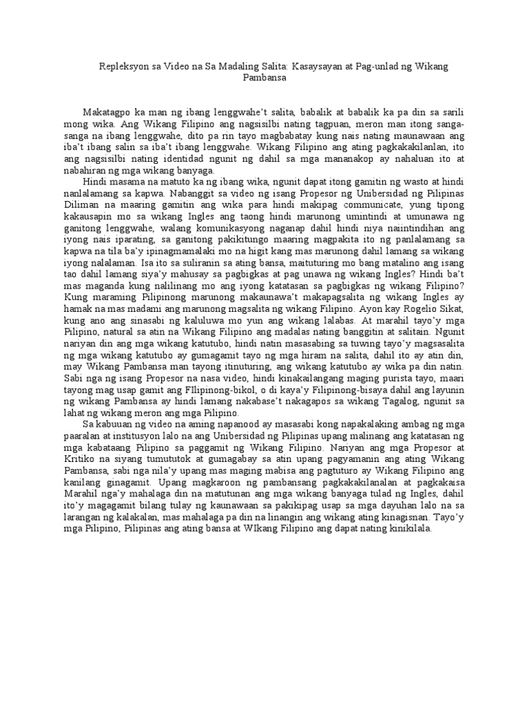 Repleksyon Sa Video Na Sa Madaling Salita Pdf