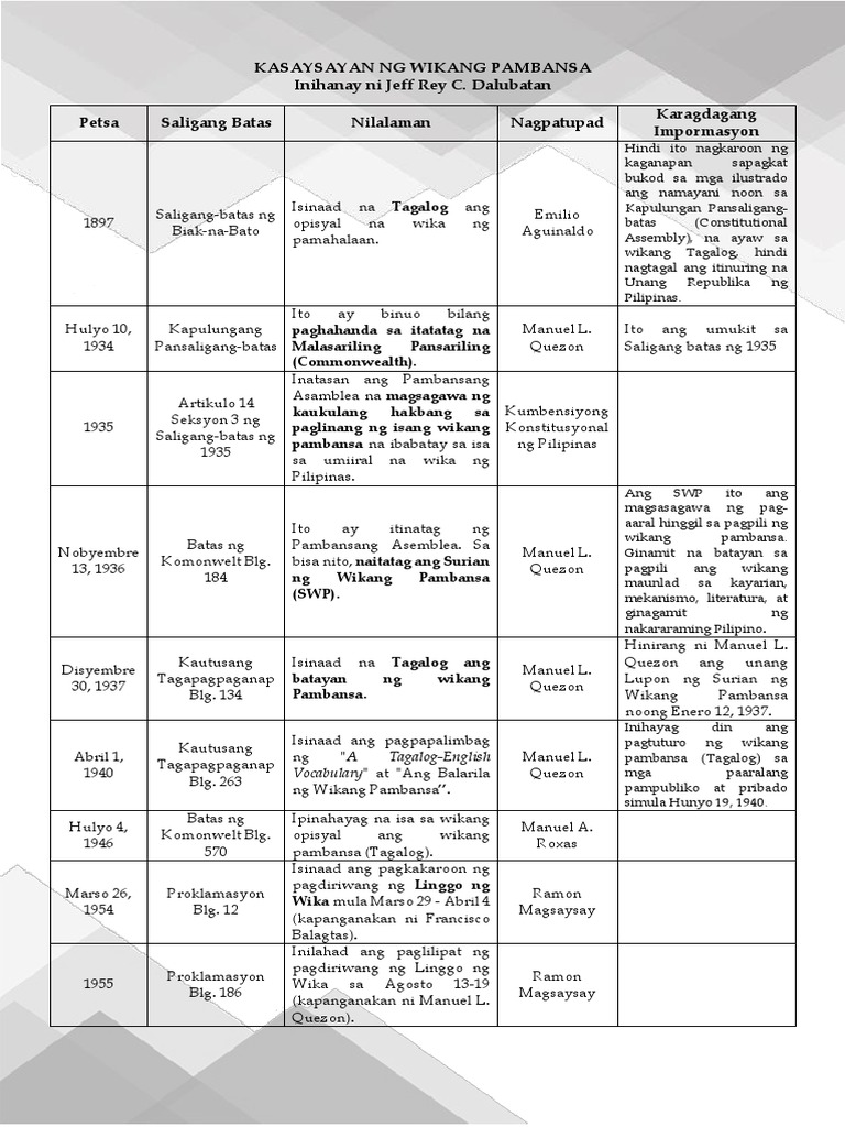 Kasaysayan Ng Wikang Filipino Pdf